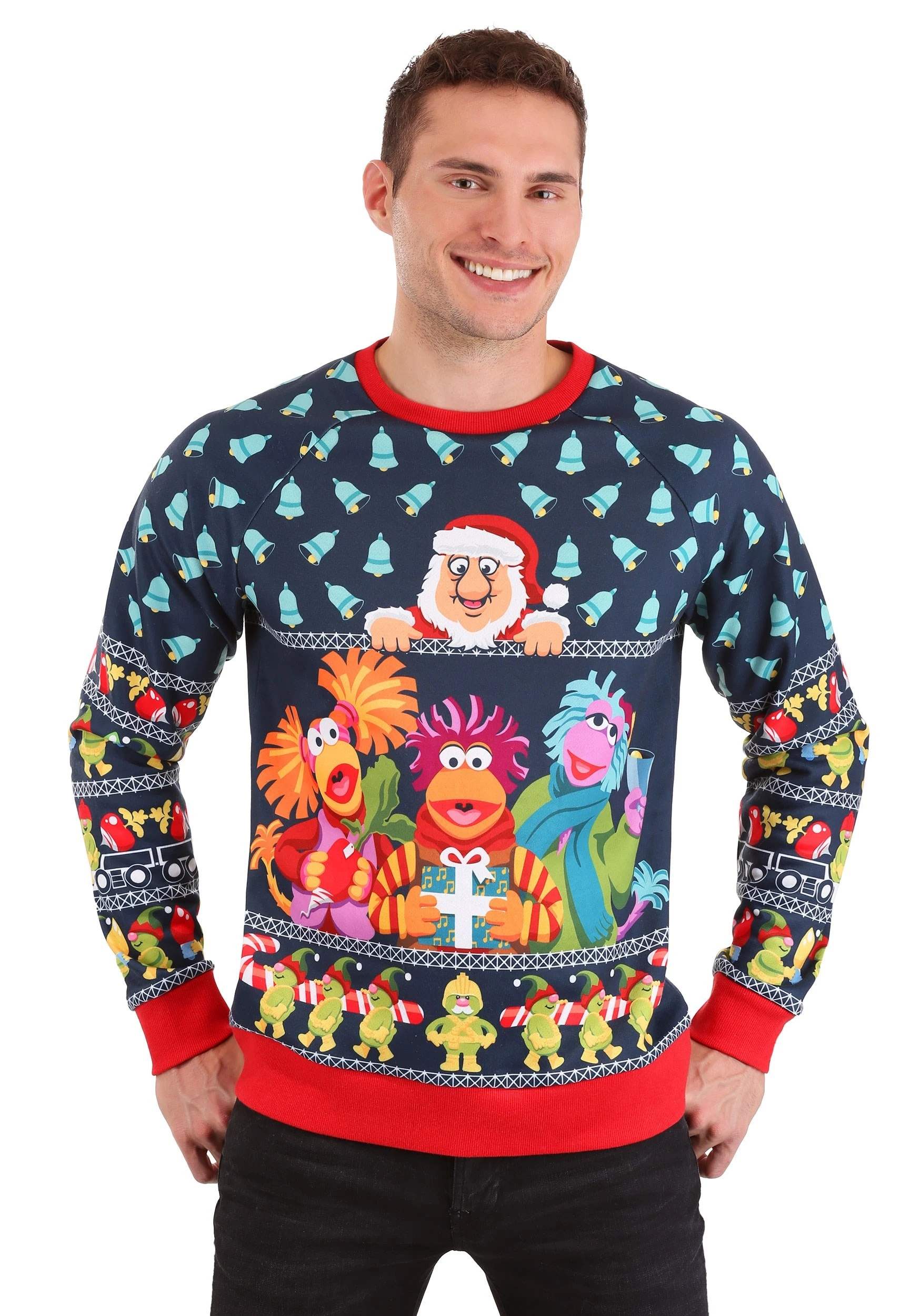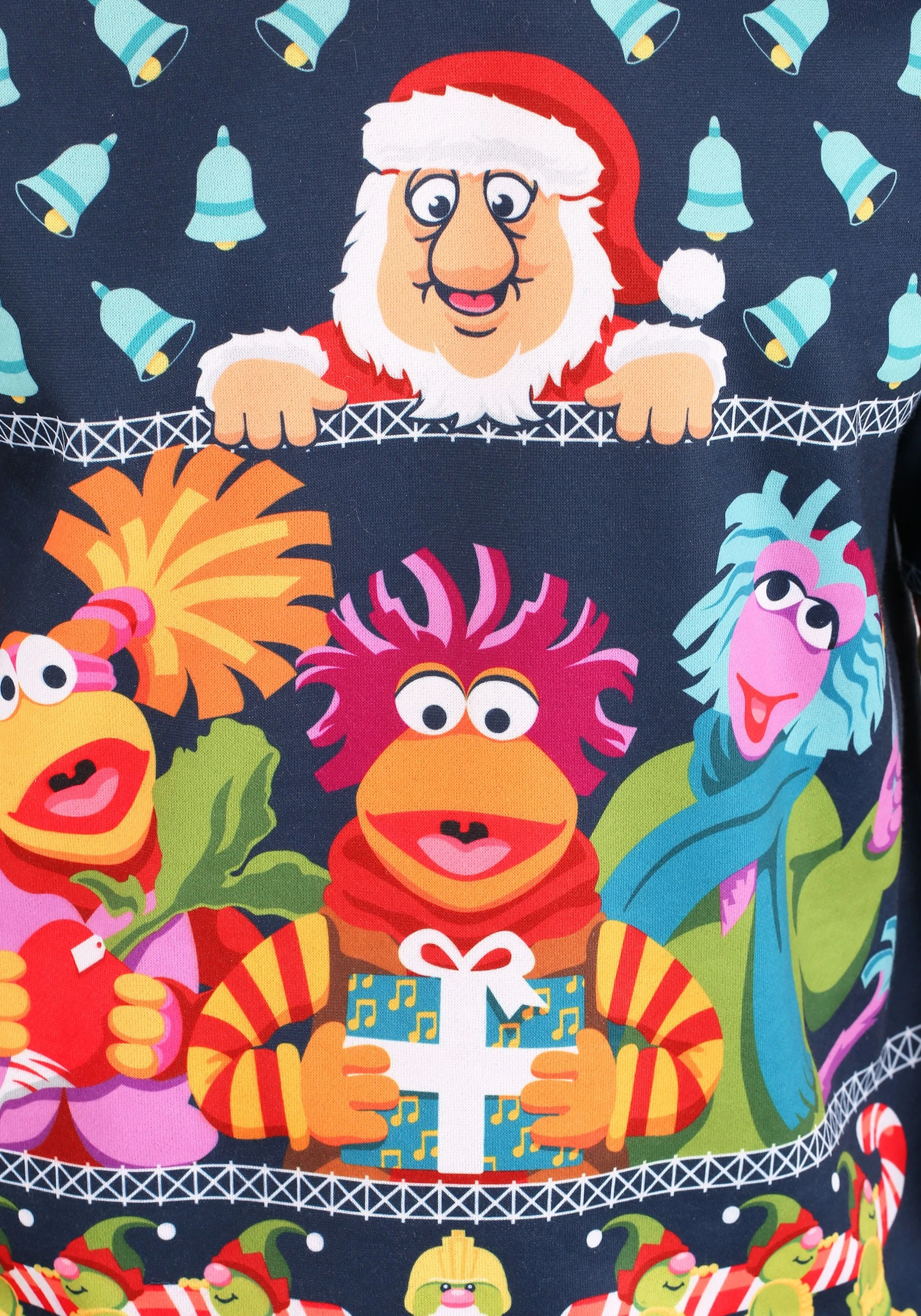 Now that you know the lyrics, it’s time to get into the spirit and sing along! This Fraggle Rock Sublimated Christmas Sweatshirt combines holiday style with your favorite characters from Fraggle Rock. The sweater-style shirt has a sublimated image of Red Fraggle, Gobo Fraggle, and Mokey Fraggle on the front. It also has a repeating pattern of bells on top, which is a nod to their very special Christmas special. Just toss it on with your favorite pair of jeans and you’ll have a unique look to bring to your next ugly Christmas sweater party!