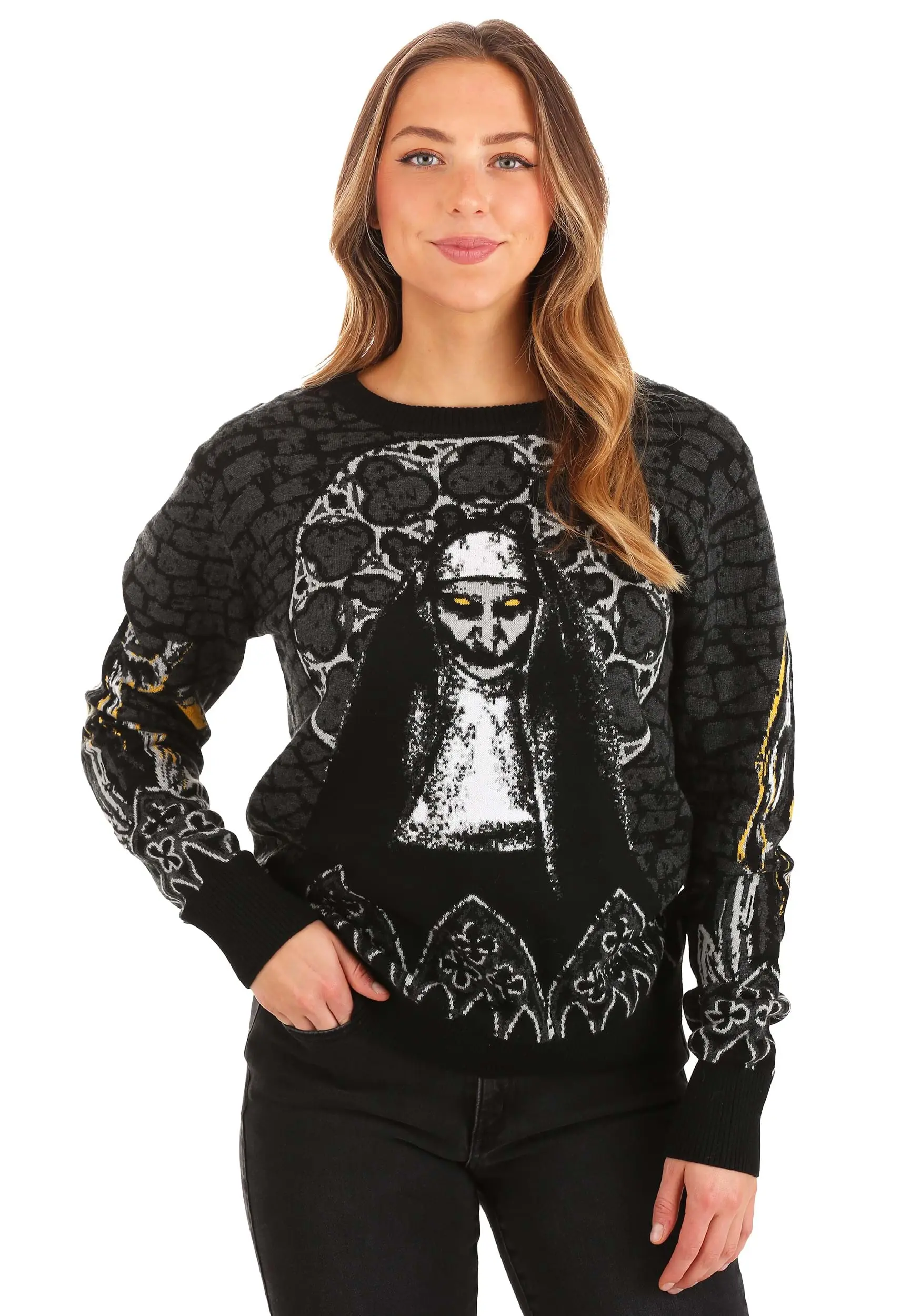 - Soft sweater has an image of The Nun