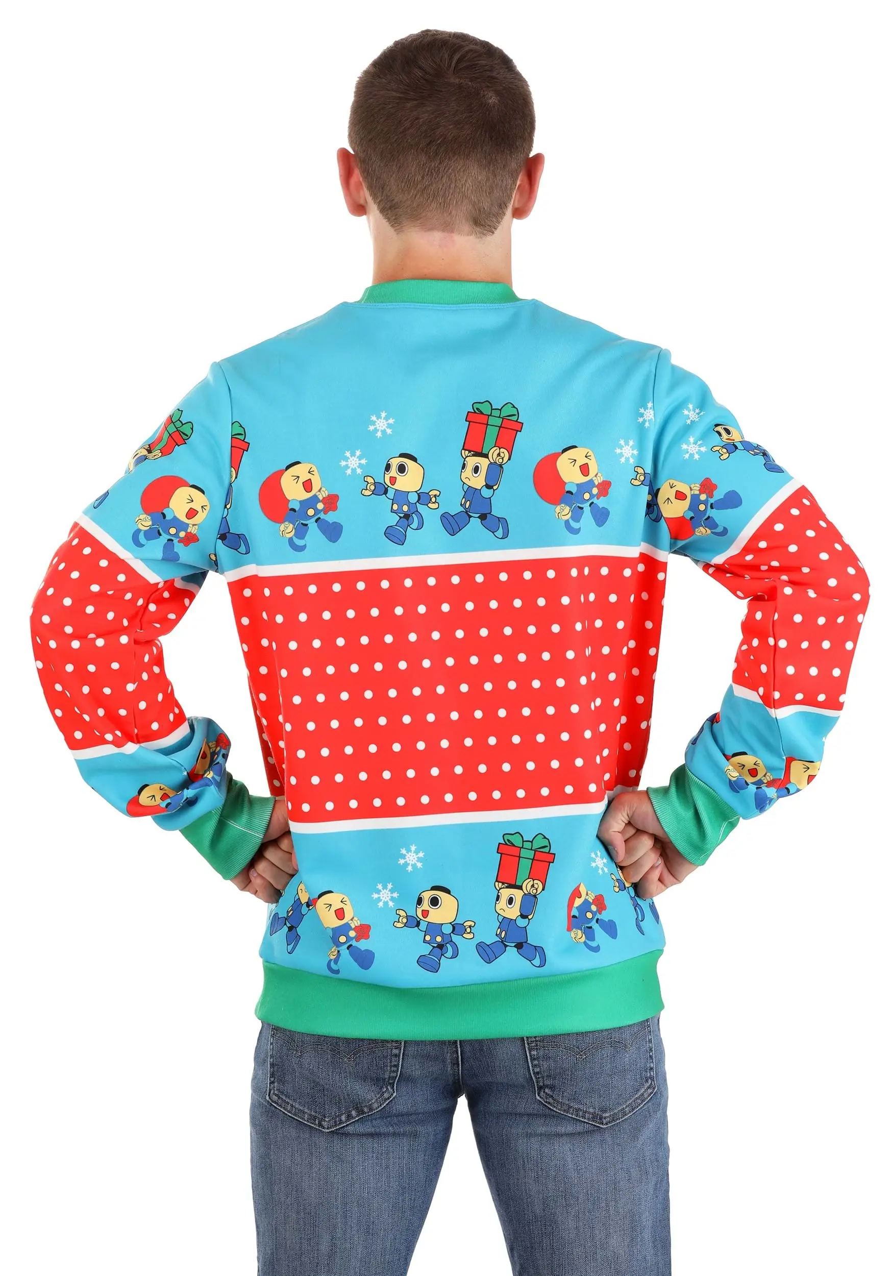 Technically this sweater is “ugly,” but can it be an ugly sweater with the adorable pair of Megaman and Rush on the front? The beautiful Christmas sweater features cute graphics from the video game, with a seasonally appropriate red and green splash of color. If you’re looking for officially licensed costume apparel and are a fan of the classic game—no need to nab a buddy’s sweater powers—just pick up a Megaman Christmas Sweater for Adults, exclusively made by us!