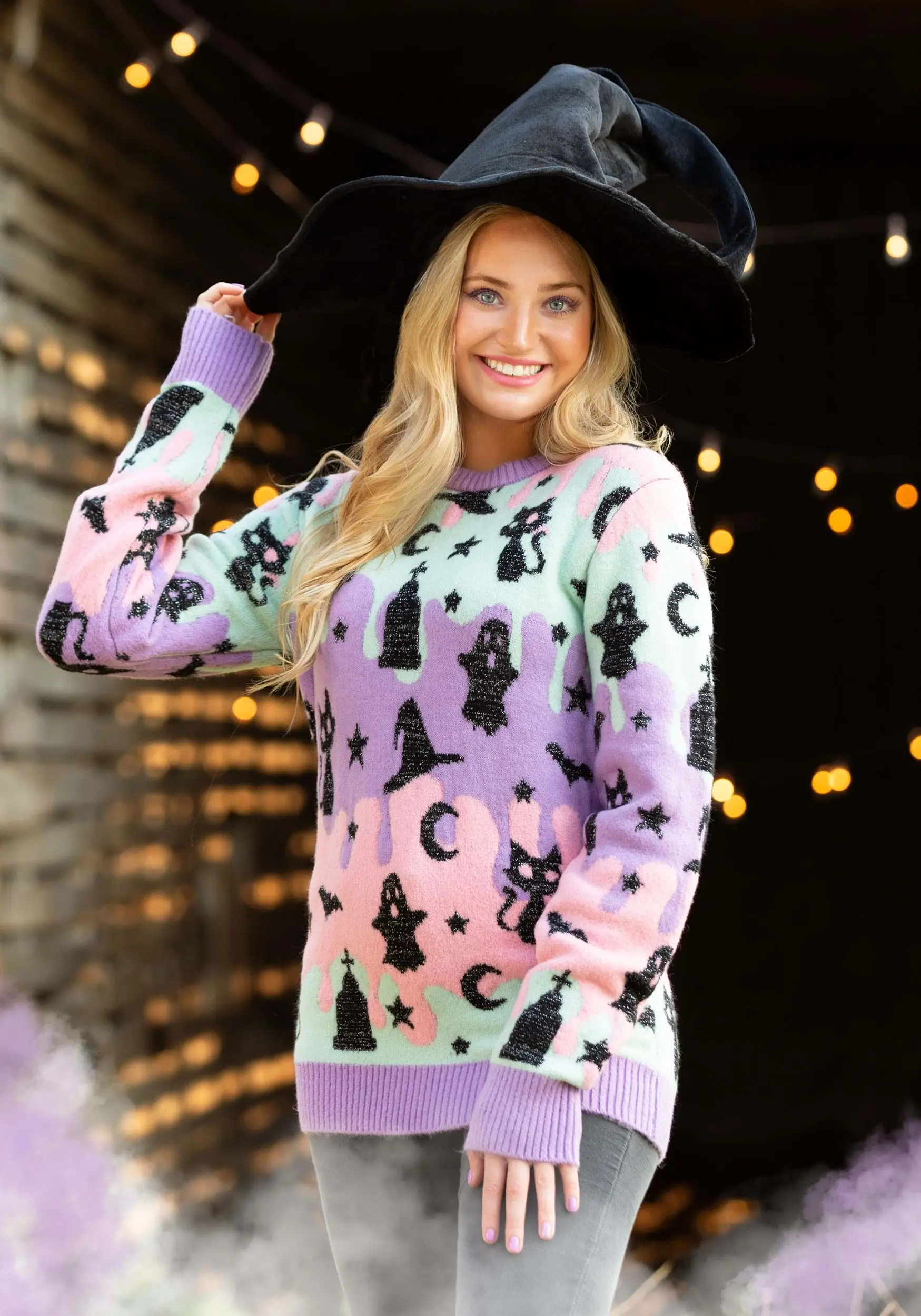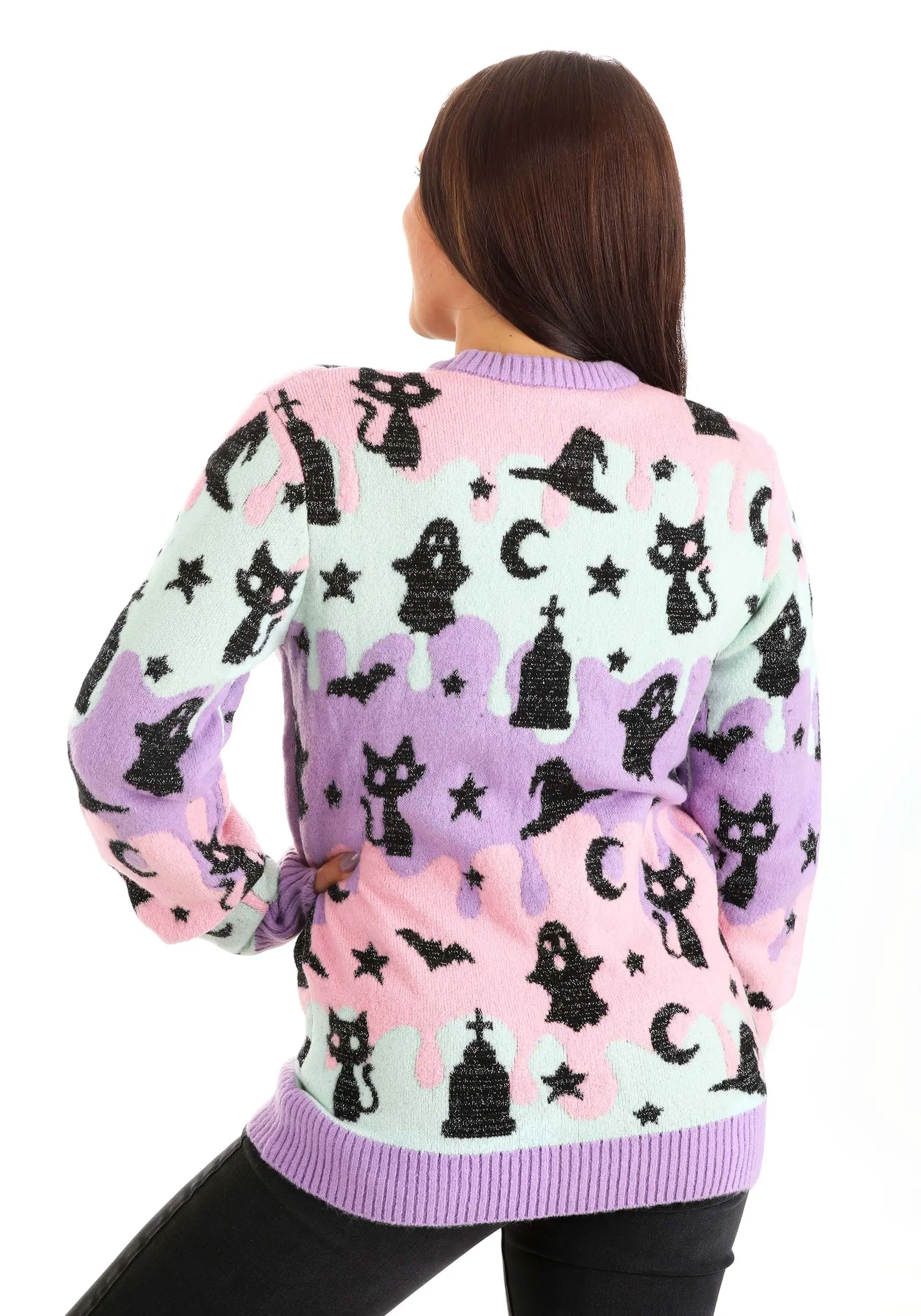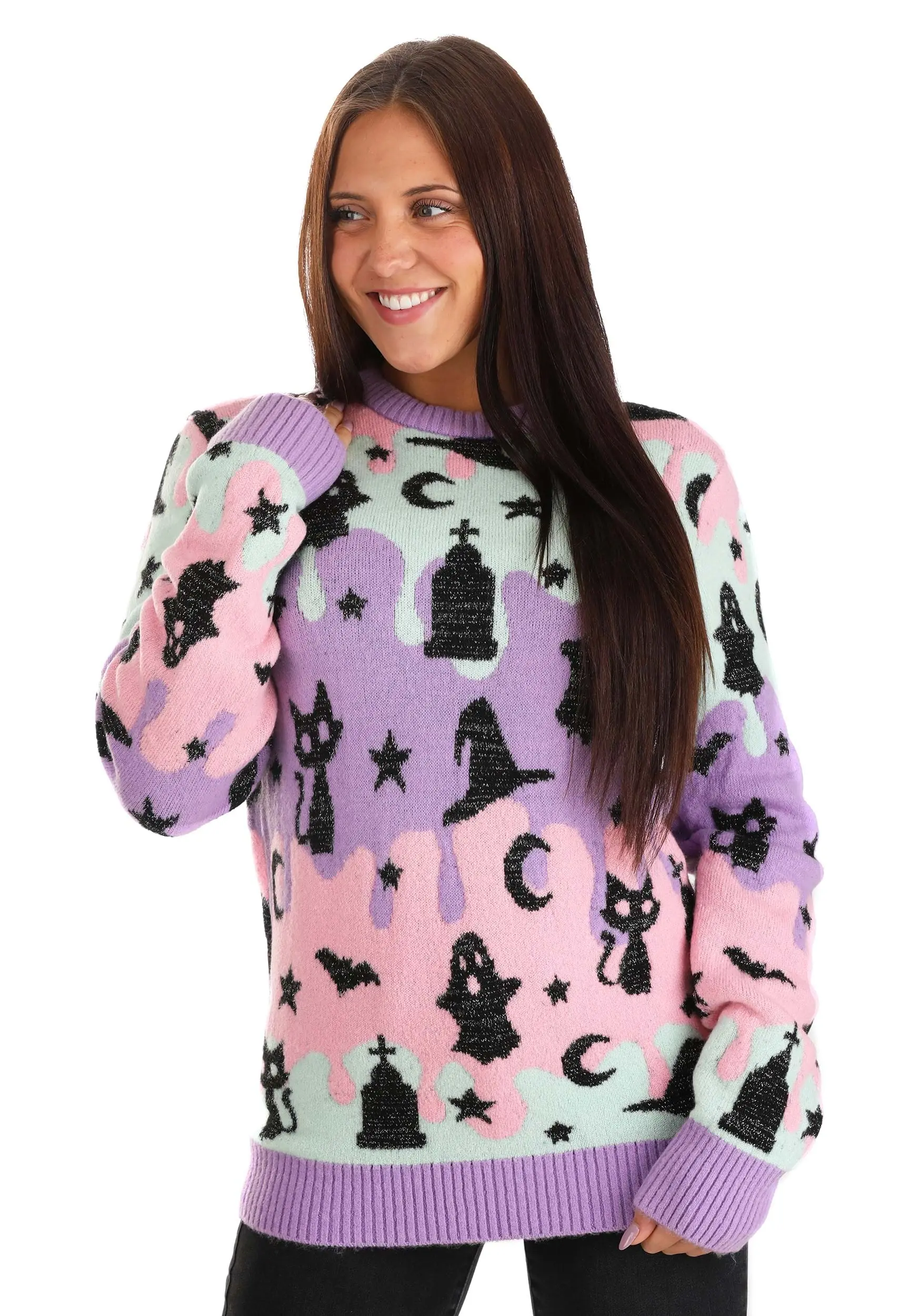 When all the things that sneak around in the shadows celebrate the holiday by coming out in pastel style, you know that you’re going to be smiling all season! Bring a brighter shade of fun to Halloween with this cute Halloween sweater this year.