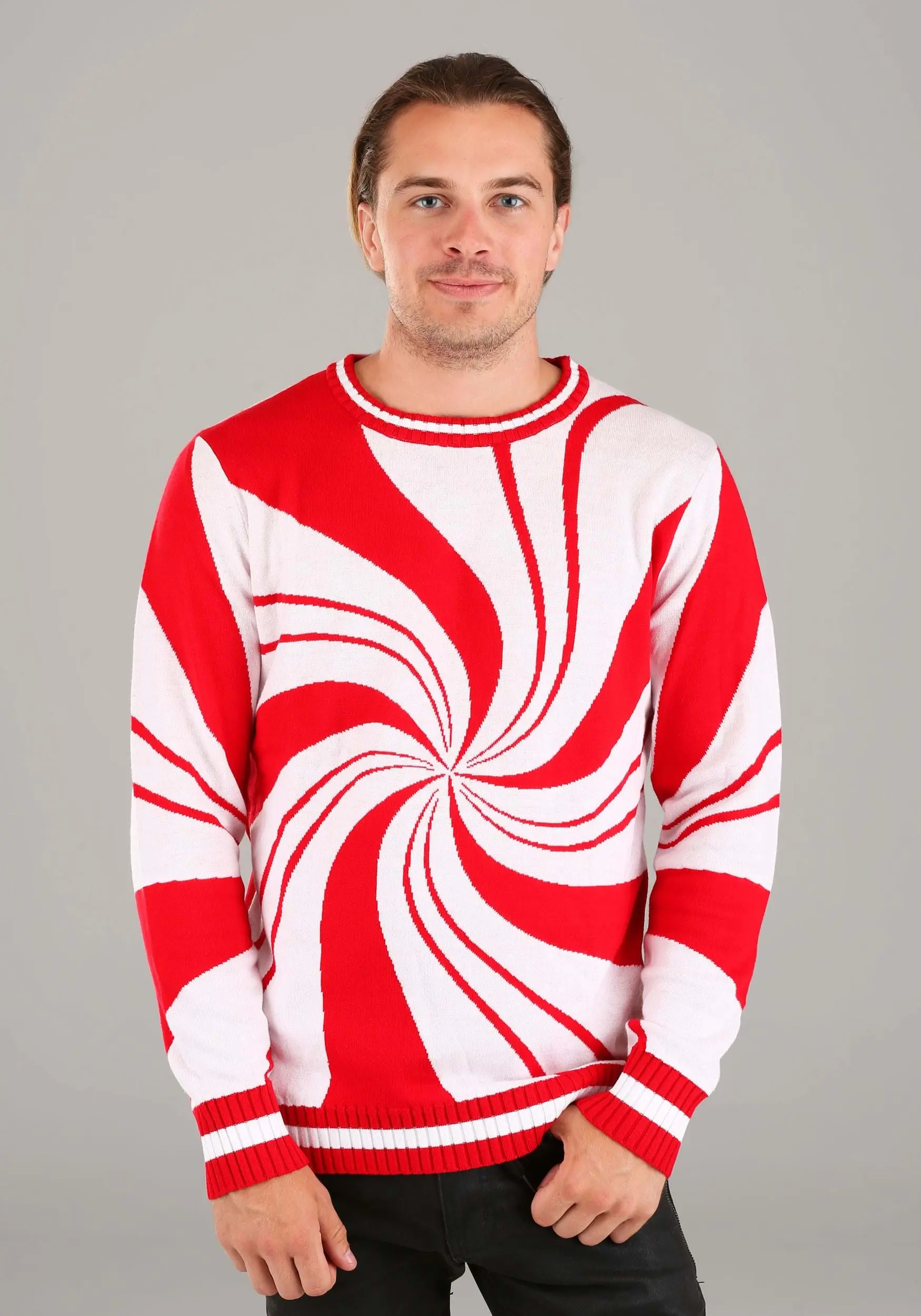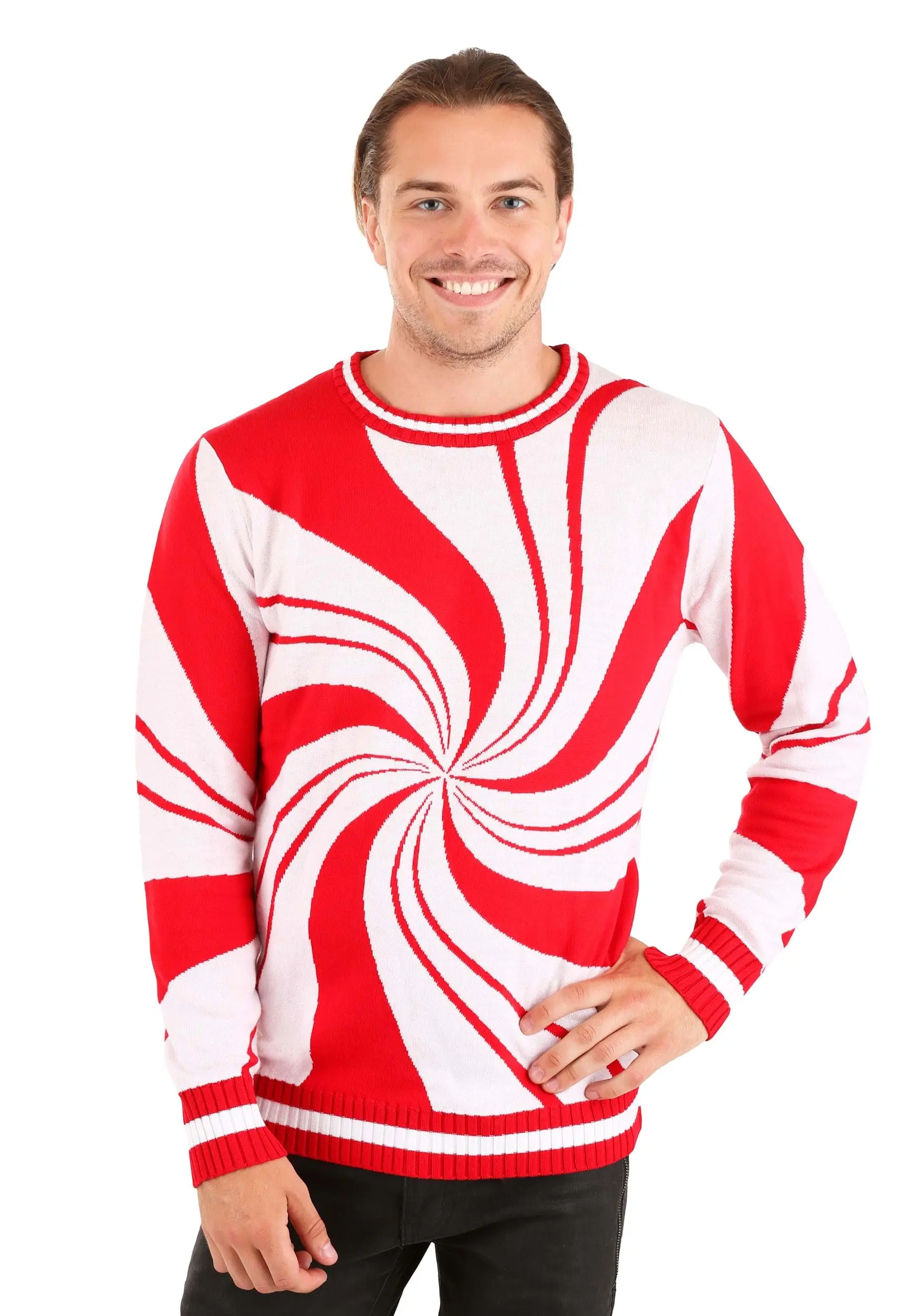 Well, we managed to combine the classic candy with a cozy ugly sweater design! This Peppermint Candy Ugly Christmas Sweater is the best way to get a cool look while you warm up.