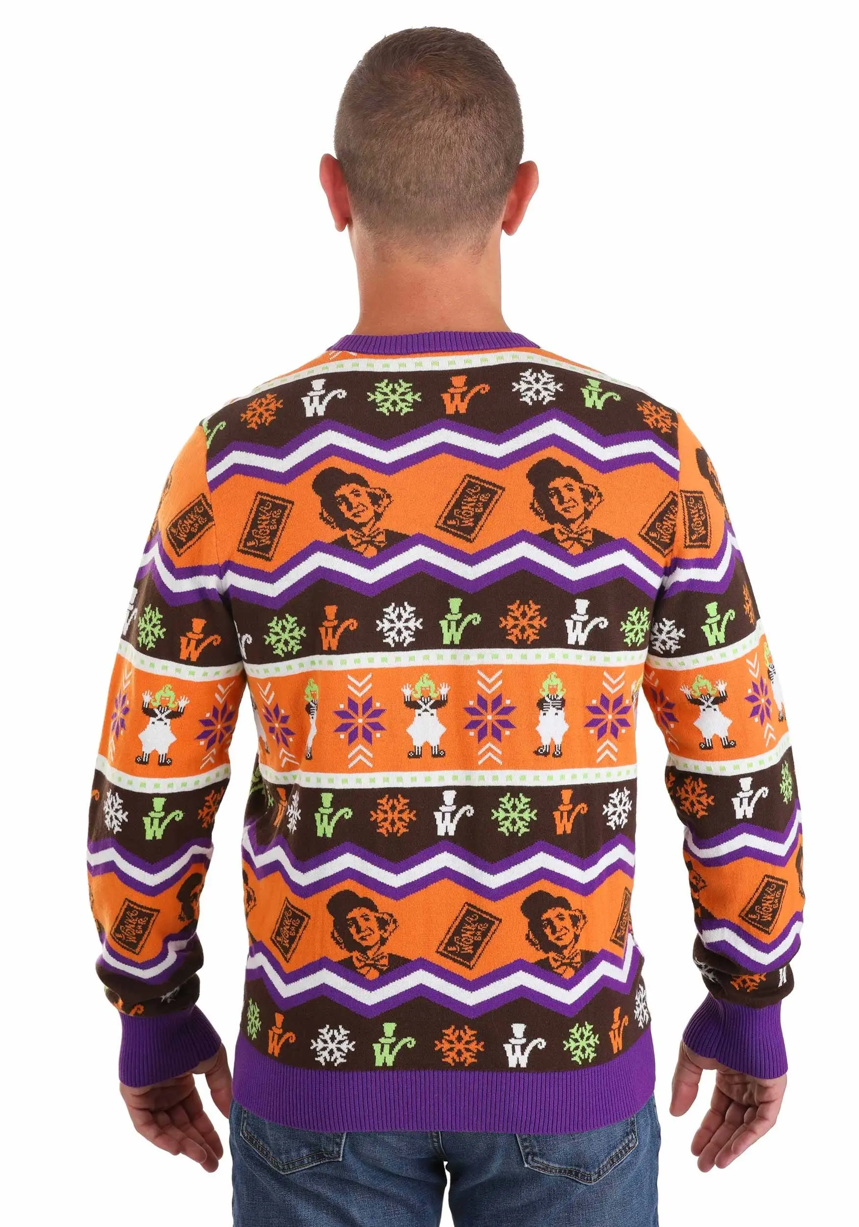 There was one expert team of costume and apparel makers that were up for the task of creating a Willy Wonka sweater, and it happened to be our own in-house team of designers. So, we’re very proud to present our exclusive Willy Wonka Ugly Sweater for Adults!