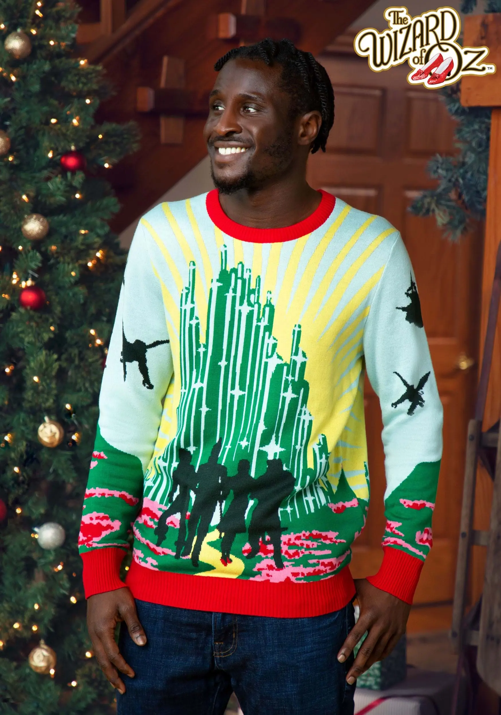 Designed by our in-house creative team, this officially-licensed Wizard of Oz sweater is sure to enchant any wardrobe. While the red and green design is a fun twist on the “ugly Christmas sweater” theme, the evergreen Emerald City has a place in your yearlong wardrobe. Purchase this exclusive look for the Wizard of Oz enthusiast on your Christmas list or buy it for yourself. Eitherway, you’ll find that this sweater puts that special Oz skip in your step!