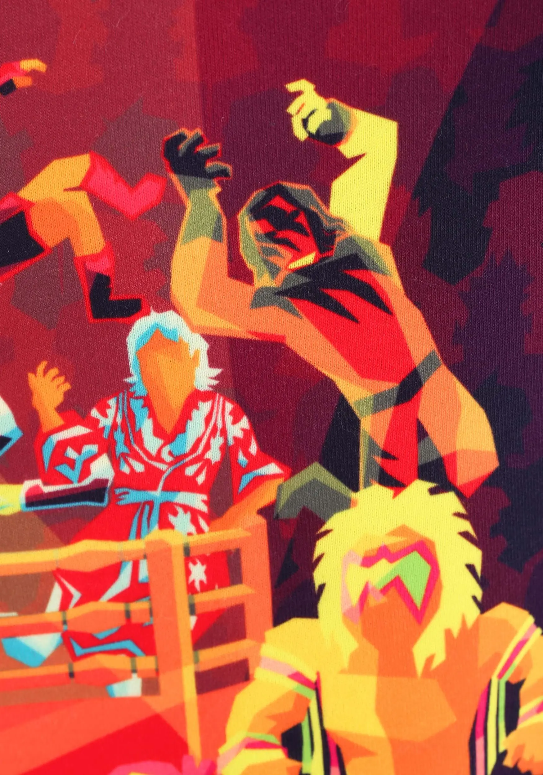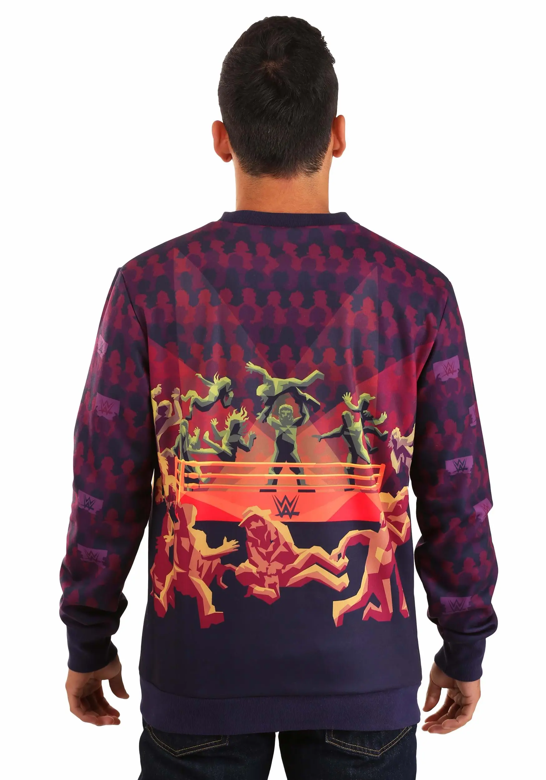 Lovers gonna love. Players gonna play. Haters gonna hate. And wrestlers? Well, they’re gonna rumble. You can’t stop them—it’s in their DNA. If you put a whole mess of wrestlers inside of a ring together, they just have to battle it out until only one of them remains standing in the ring. Now, our expert designers have captured the chaotic nature of a WWE battle royale with this Radical Rumble WWE Sweater.