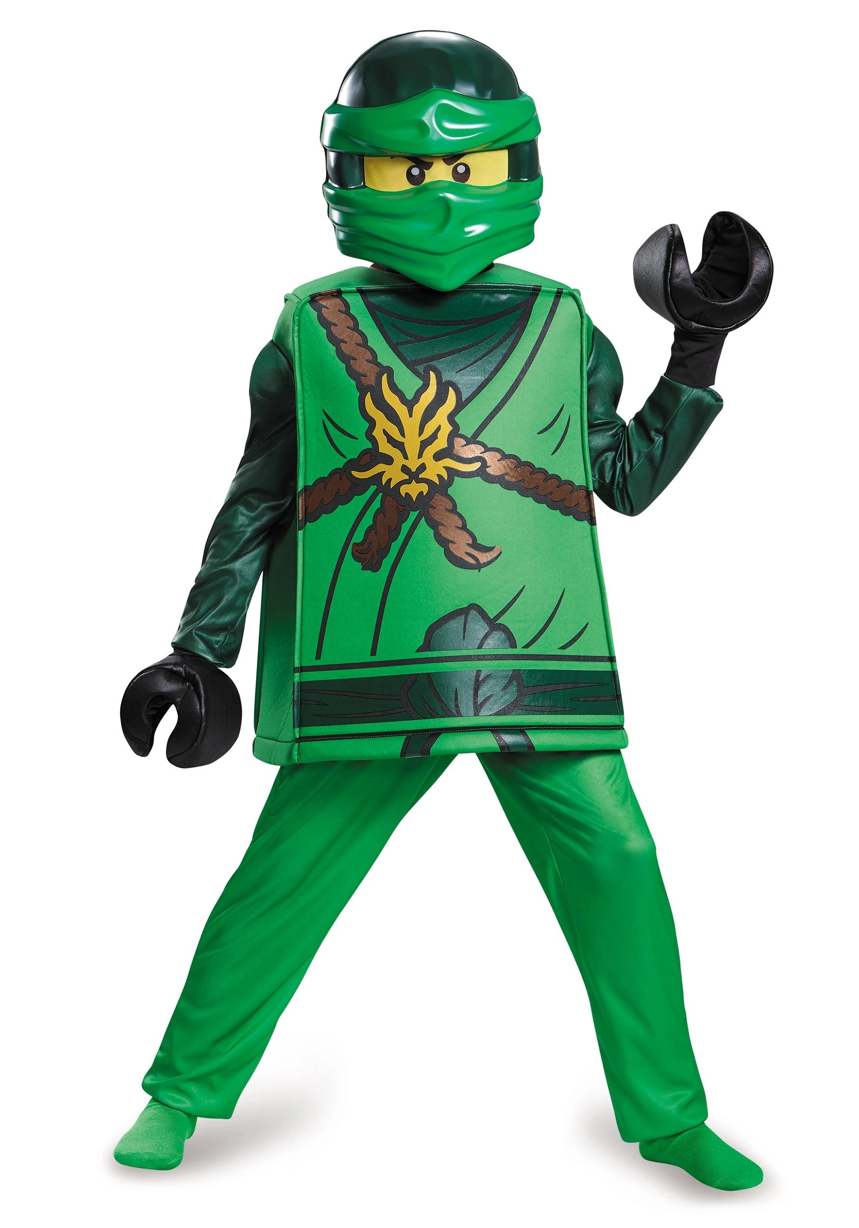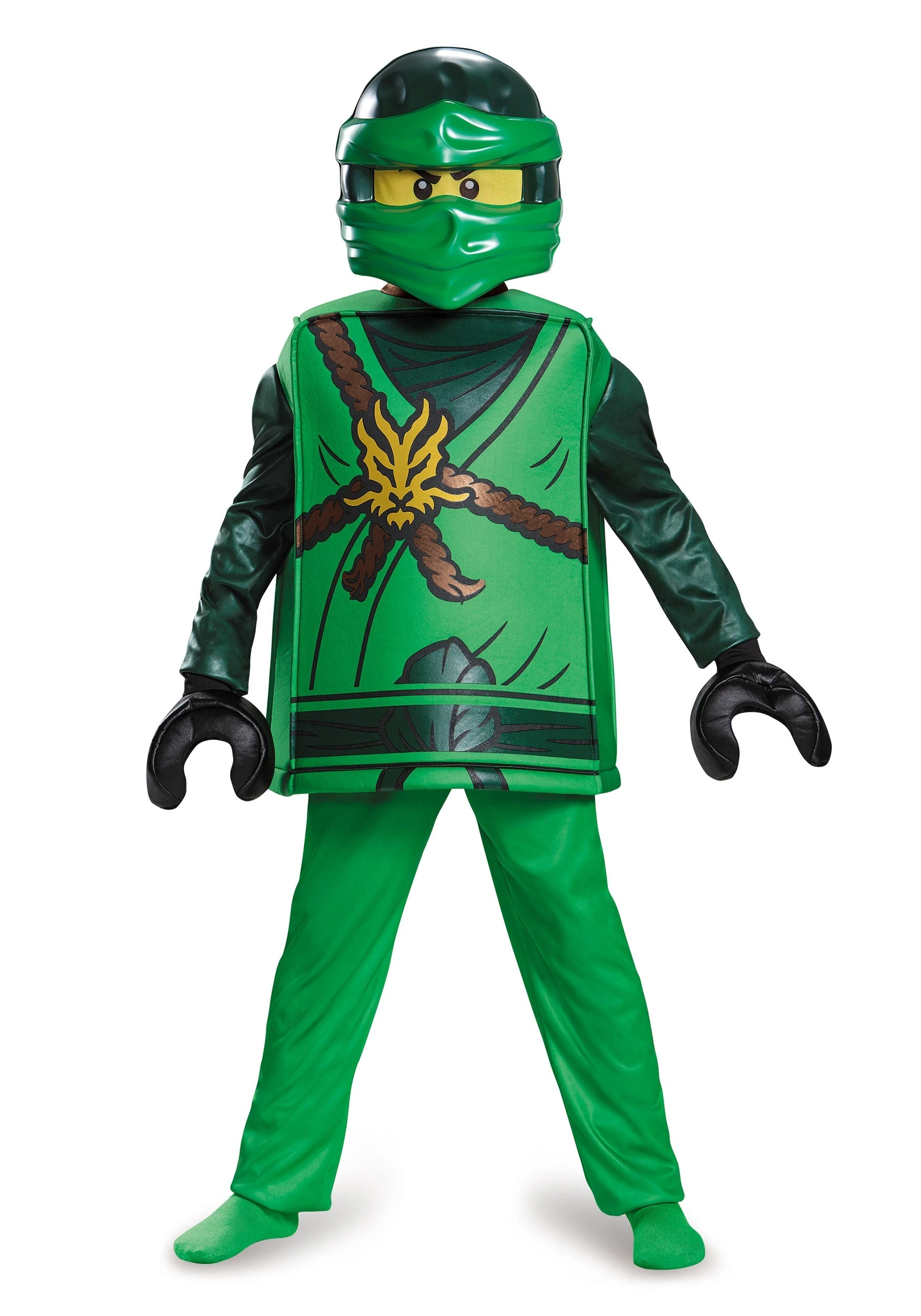 This Ninjago Lloyd costume for boys helps your kid unlock his true potential! It recreates the look from the cartoon series perfectly, from the box-shaped Lego body tunic, to the mask that transforms your child’s face into that of a Lego head. Check out our entire selection of Lego officially licensed costume to assemble a group theme for him and his friends or sibling. We’re sure they’ll all love using Spinjitzu when they have these deluxe costumes!