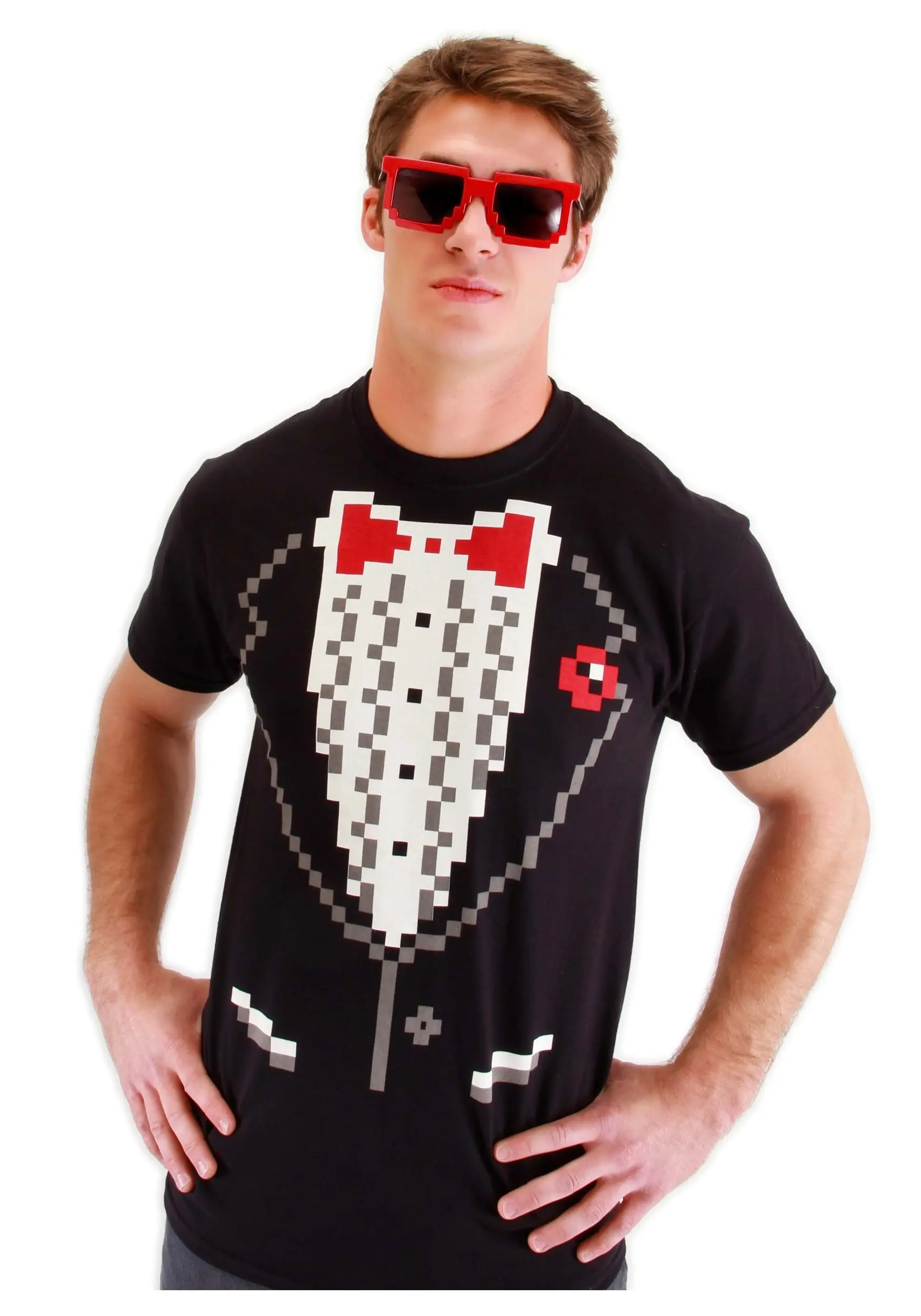 - Crew neck style w/ 8-bit style tuxedo printed on the front