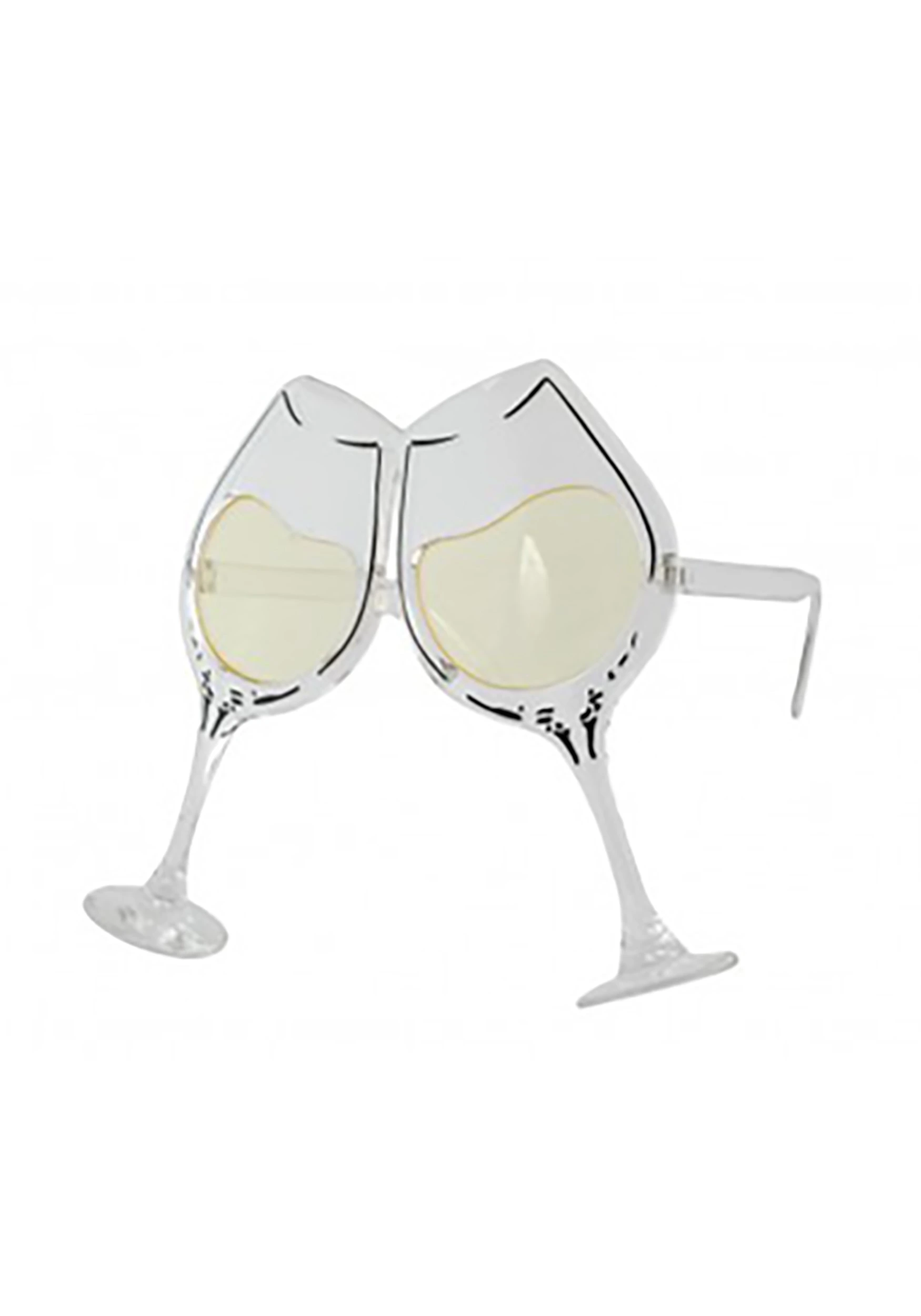You’ll always be ready for a party in these cheerful clinking glasses! The frames are all clear, with some black detailing on the front to accent the wine glass shapes. The lenses are yellow and look like they are sloshing, mid-clink in a toast. Each eye has its own glass, and they tilt towards each other to meet in the middle. So, where are you going to wear these festive specs? Is a friend having a birthday, and these would go well with their crown? Are you hosting a New Year’s Eve party and want a fun but hassle-free look? Then raise a toast to these wine-derful glasses!