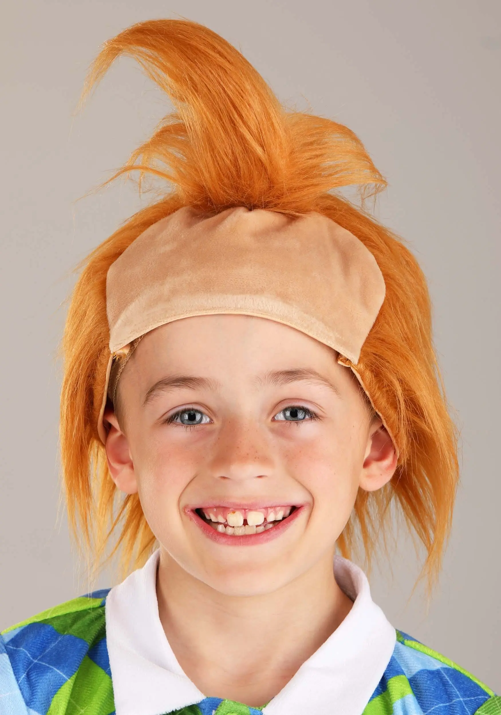 - Faux hair wig has jersey knit lining, minky forehead piece, elastic back to secure on head