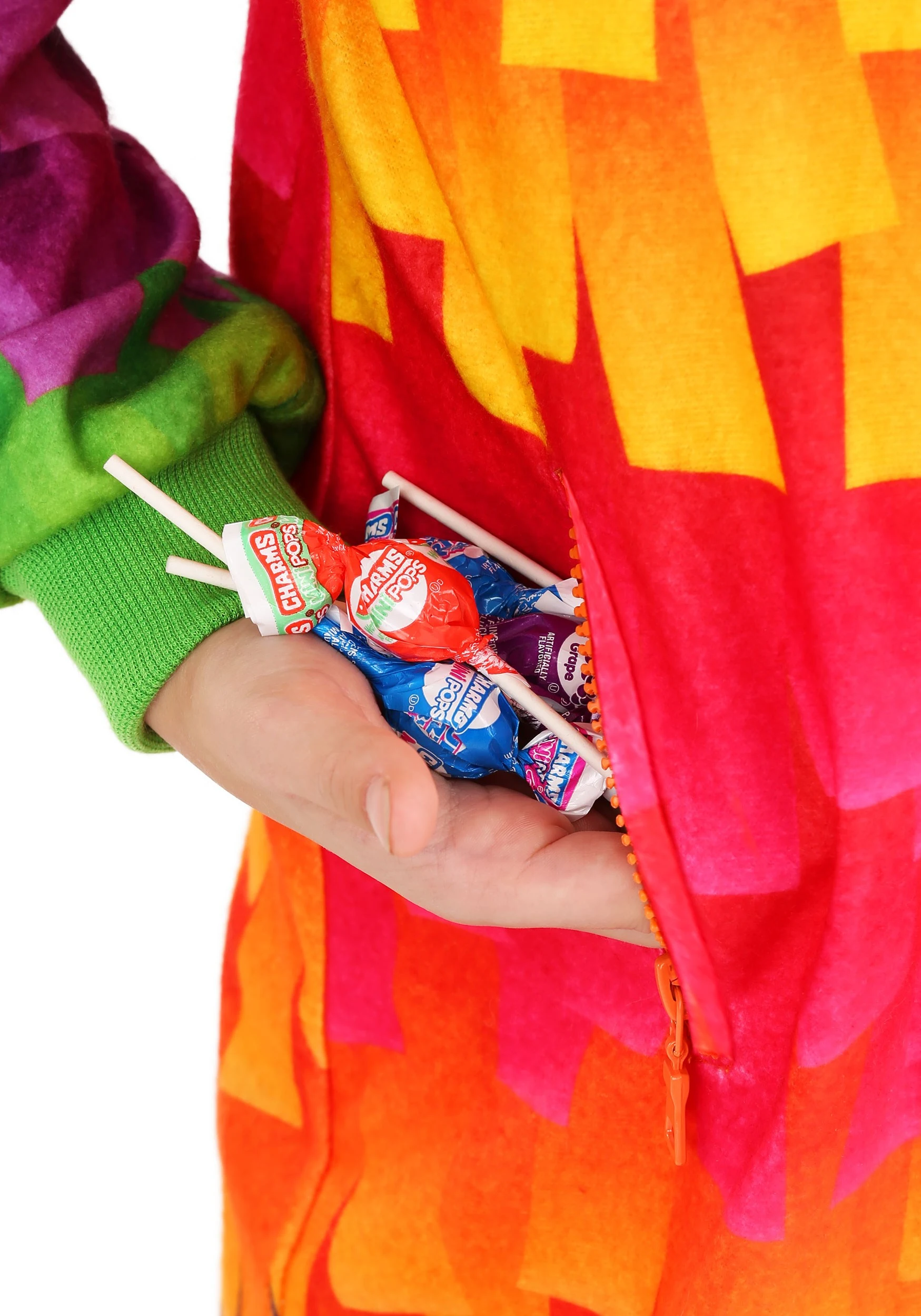 Give life to the beloved party animals by slipping into this on Halloween or whatever costume occasion you find nearing. The hooded jumpsuit features a cool 3D-looking design with all the colors of a real piñata. Whether you need a pick-me-up piece of candy or a playful way to colorize your wardrobe, this fun jumpsuit will do the trick. And because it’s a Made By Us exclusive, you know that our in-house team designed and crafted the costume with care and love in every stitch.