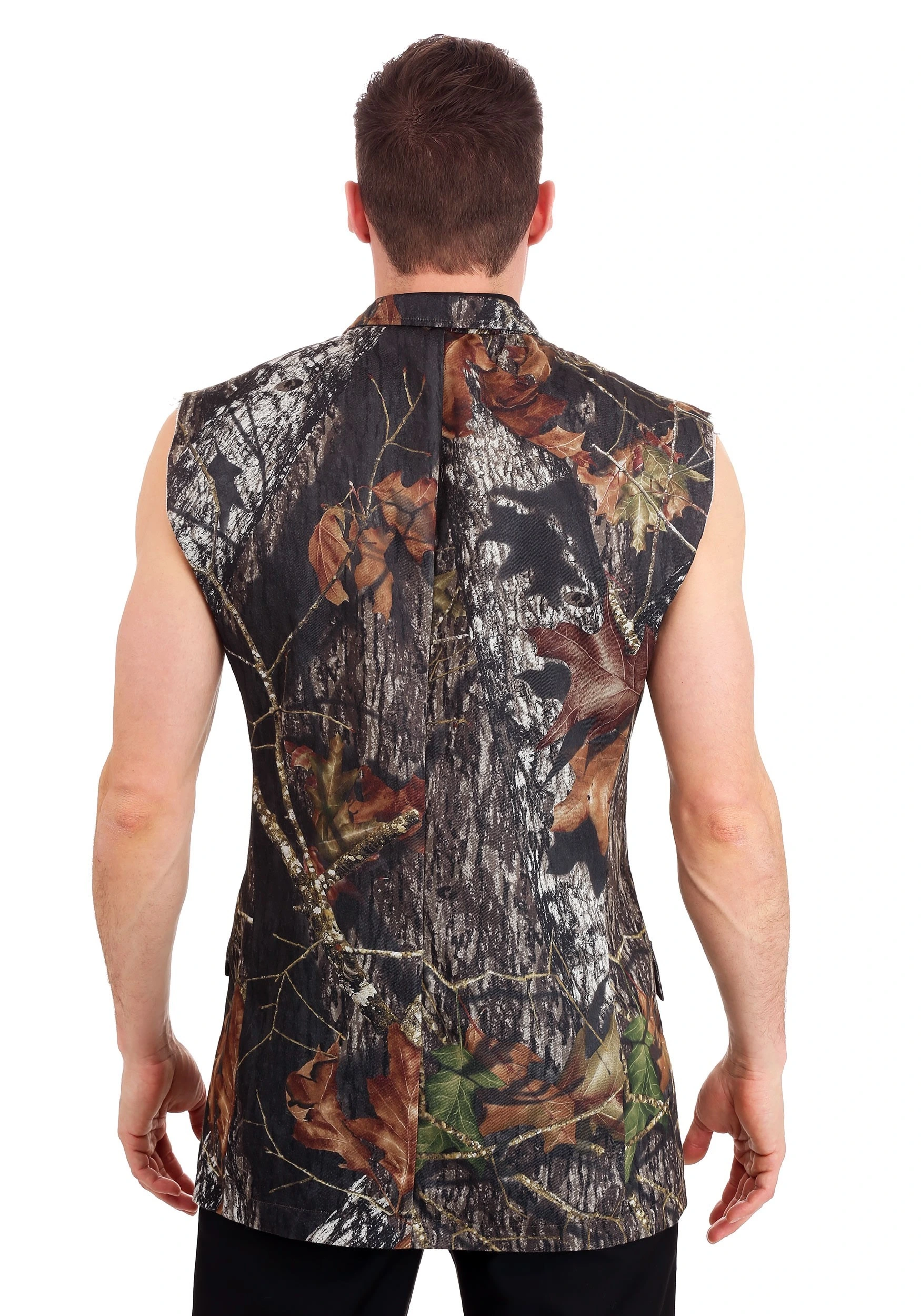 Join the wild look of the forest with the proper look of a refined gentleman with this Mossy Oak Sleeveless Tux Jacket. This elegant vest would be accepted at all formal affairs in the civilized world but it has a lovely camouflage style that calls out your inner nature. The sleeveless quality even keeps those guns out for all to see!Â