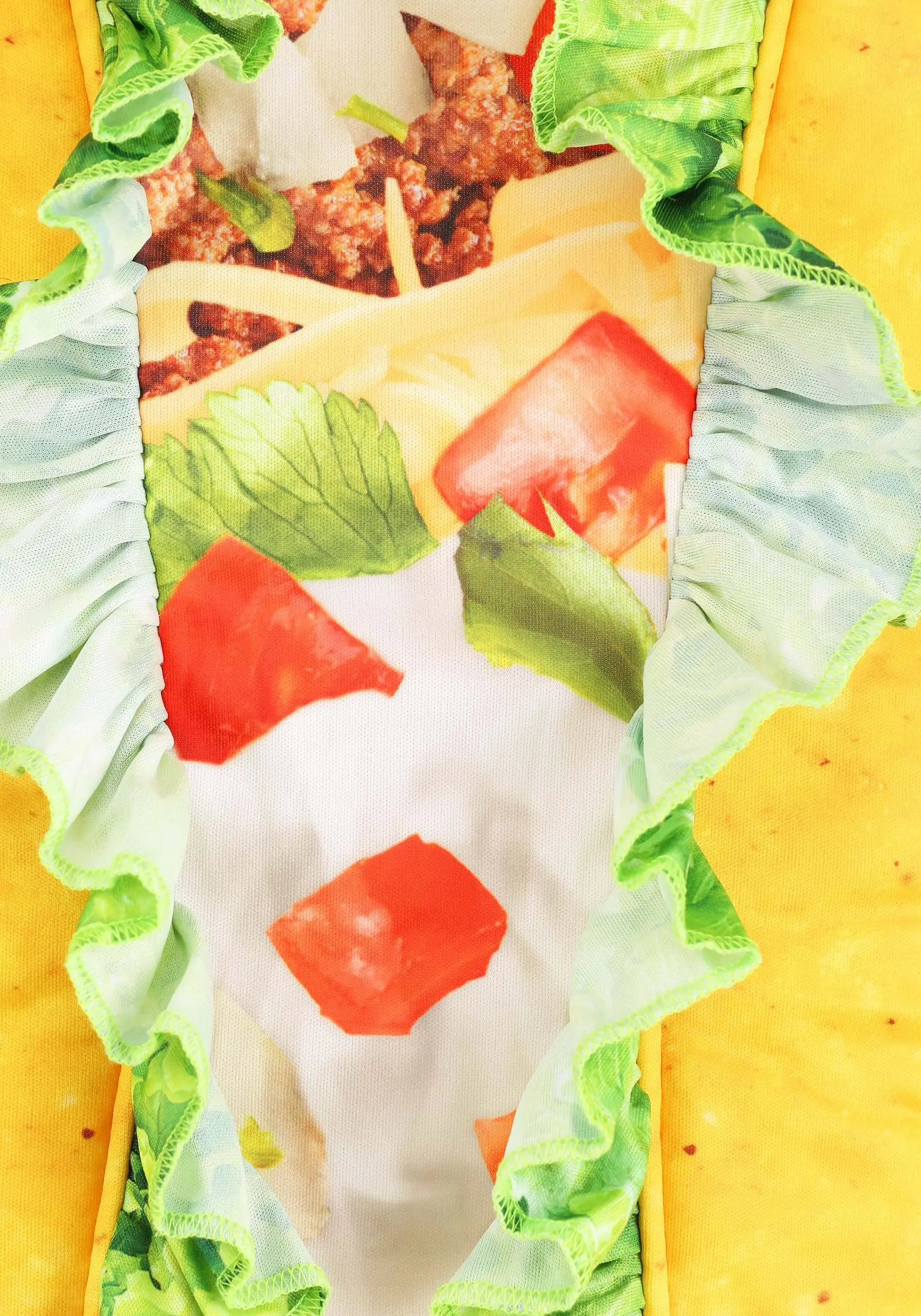 - Front inset panel has print image of taco filling