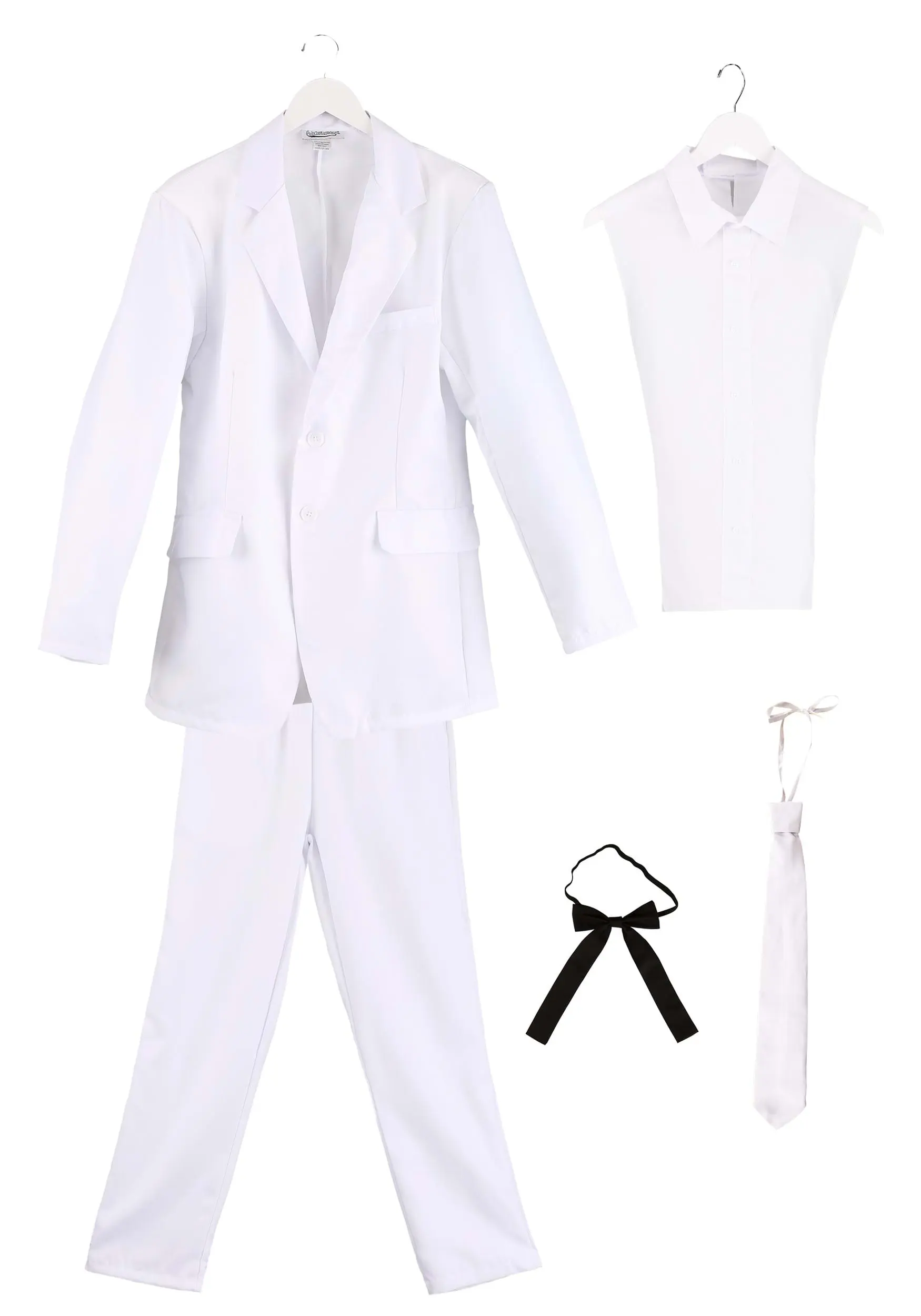 Whether you want that cool Miami Vice costume or a funny Colonel Sanders costume, this white suit is going to take your look over the top! Become your favorite pop culture character with our versatile white costume suit! This suit is made of 100% polyester twill fabric and the suit jacket has buttons and faux pockets for added detail. The pants have an elastic waist for a fit that’s comfortable all night and functional pockets so you can stash all of your important stuff. It also comes with a white necktie (don’t worry, it fits with tied ribbons, so you don’t have to worry about learning how to tie a tie). So, use it as a cool white suit or add any number of accessories to transform this look into anything you want!