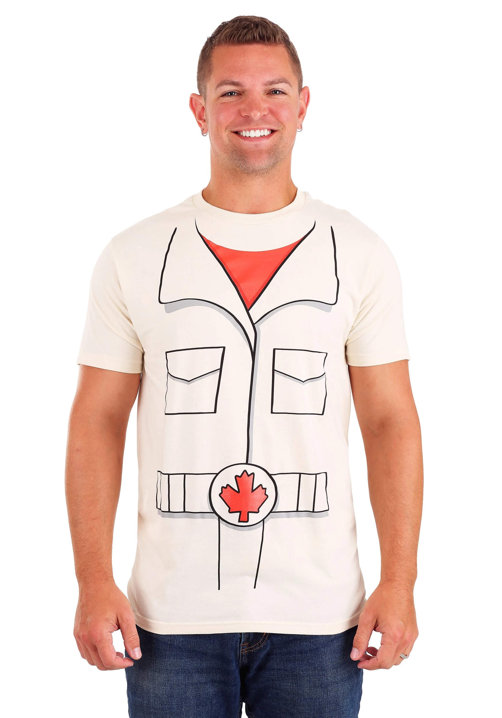 - Front has print image of Duke Caboom’s shirt