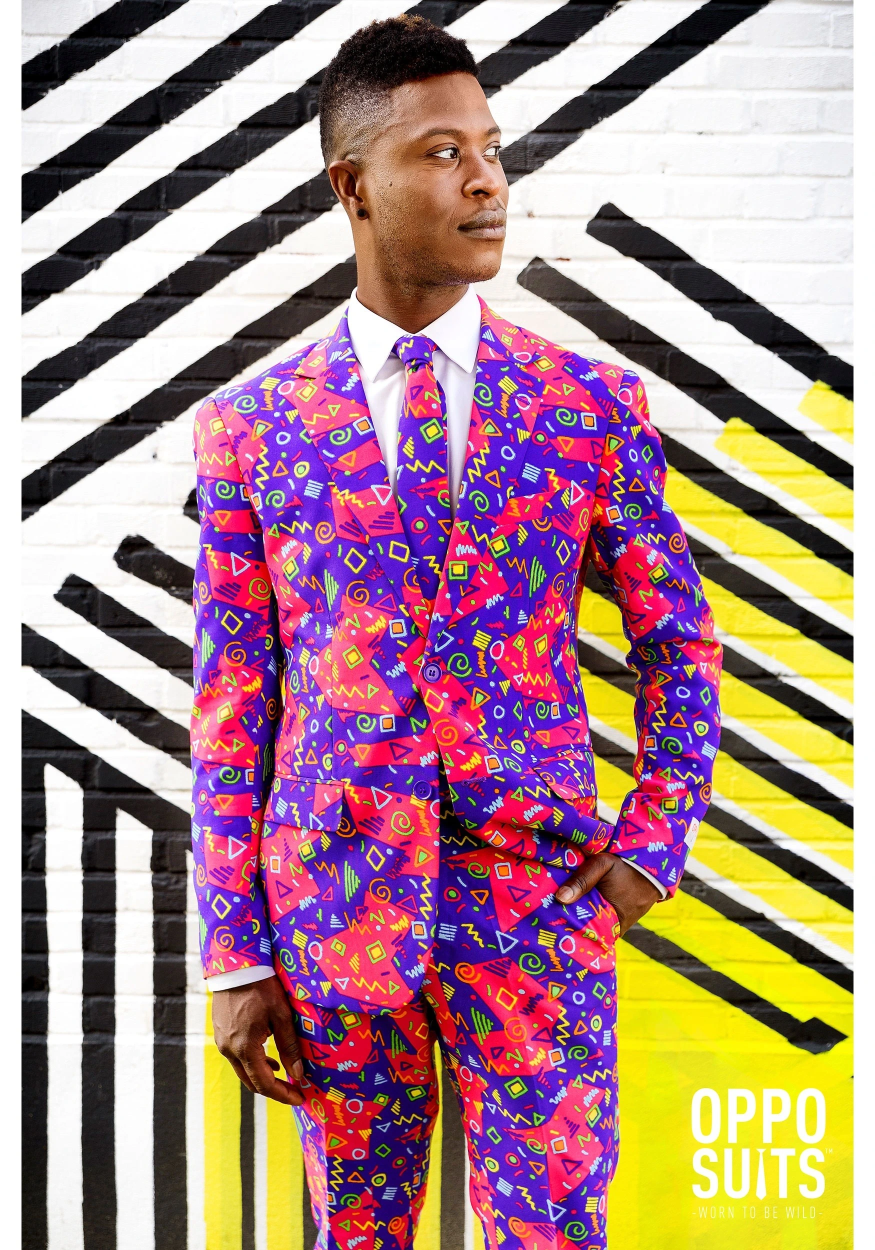 Oh, no. Wait. There totally is an outfit that’s more ’90s than you can even handle. This Fresh Prince Opposuit will have you looking like you brought 1994 along with you. With purples, pinks, neon yellows and a bunch of wild squiggles we can’t even begin to describe, this suit set will have you ready to move in with your uncle and auntie in Bel Air.