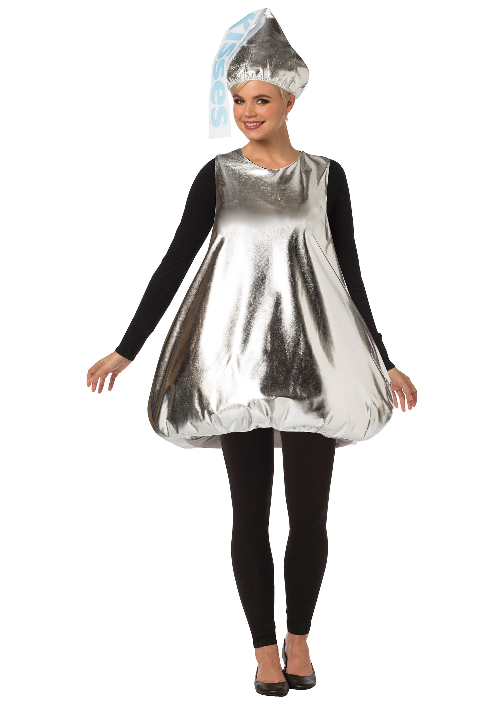 You’ll transform into one of those little bites of sweetness when you slip into this Hershey’s Kiss costume. The metallic tunic has a bubble shape to create an unmistakable Kiss shape. You can simply slip it on over your own clothing, making it a simple piece to throw on quickly before Halloween revelry. Topped off with a Hershey’s Kiss cap that has a Kisses tag, you’ll love your chocolately new character.Â