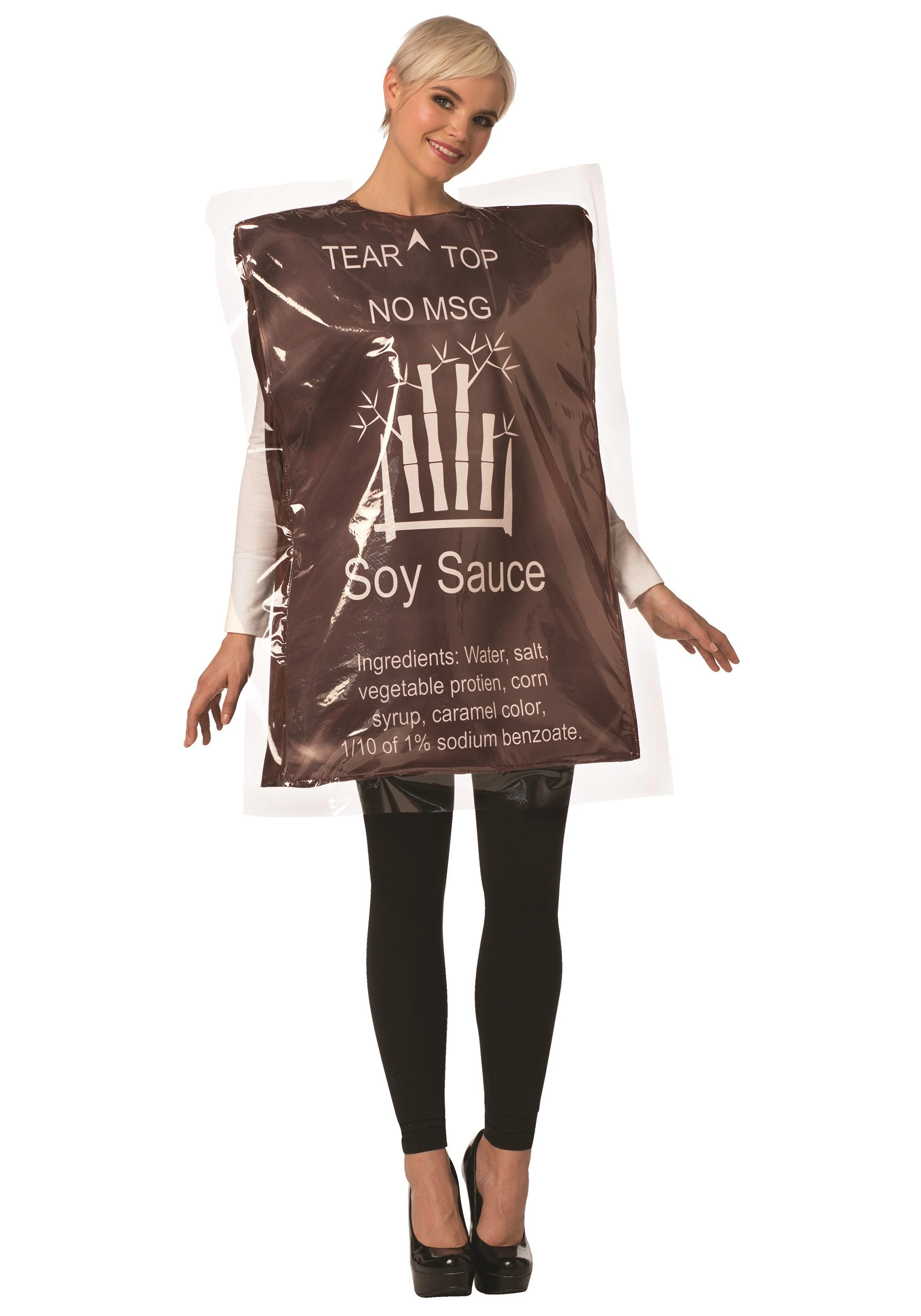 It’s impossible to choose a favorite dish to represent. Why even try? Slip into this soy sauce packet tunic and you’ll be representing the takeout vibe without having to play favorites. The glossy tunic is detailed with all the print you might find on the packets at the bottom of the brown bag. Slip the tunic on over your own clothes and you’ll be representing your go-to hunger hero.