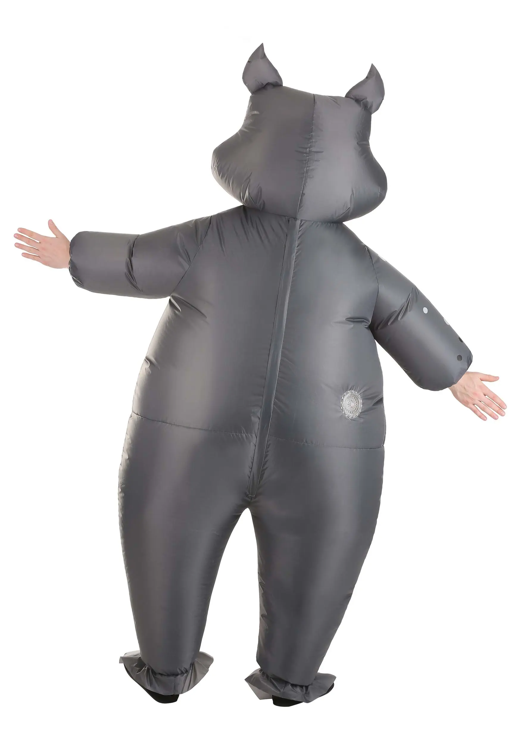 Satisfy that craving to win best in show with this Adult Inflatable Hippo Costume! This exclusive Made By Us inflatable jumpsuit addresses every challenge on your list. Made of woven polyester fabric and featuring printed graphics, you take on the appearance of a hippo in no time. Meanwhile, the attached fan gives you the robust shape of the semi-aquatic mammals. Getting into the immersive costume is made easy with a zipper on the back that stretches from the top of the legs to the neckline—simply step inside, pull it over your head, and zip it up! Elastic wrist and ankle cuffs help keep the air from escaping while the soft-sculpted ears, muzzle, and teeth ensure that you look like a hippo. See how partygoers react to your transformation through the clear plastic window located on the costume’s nose.