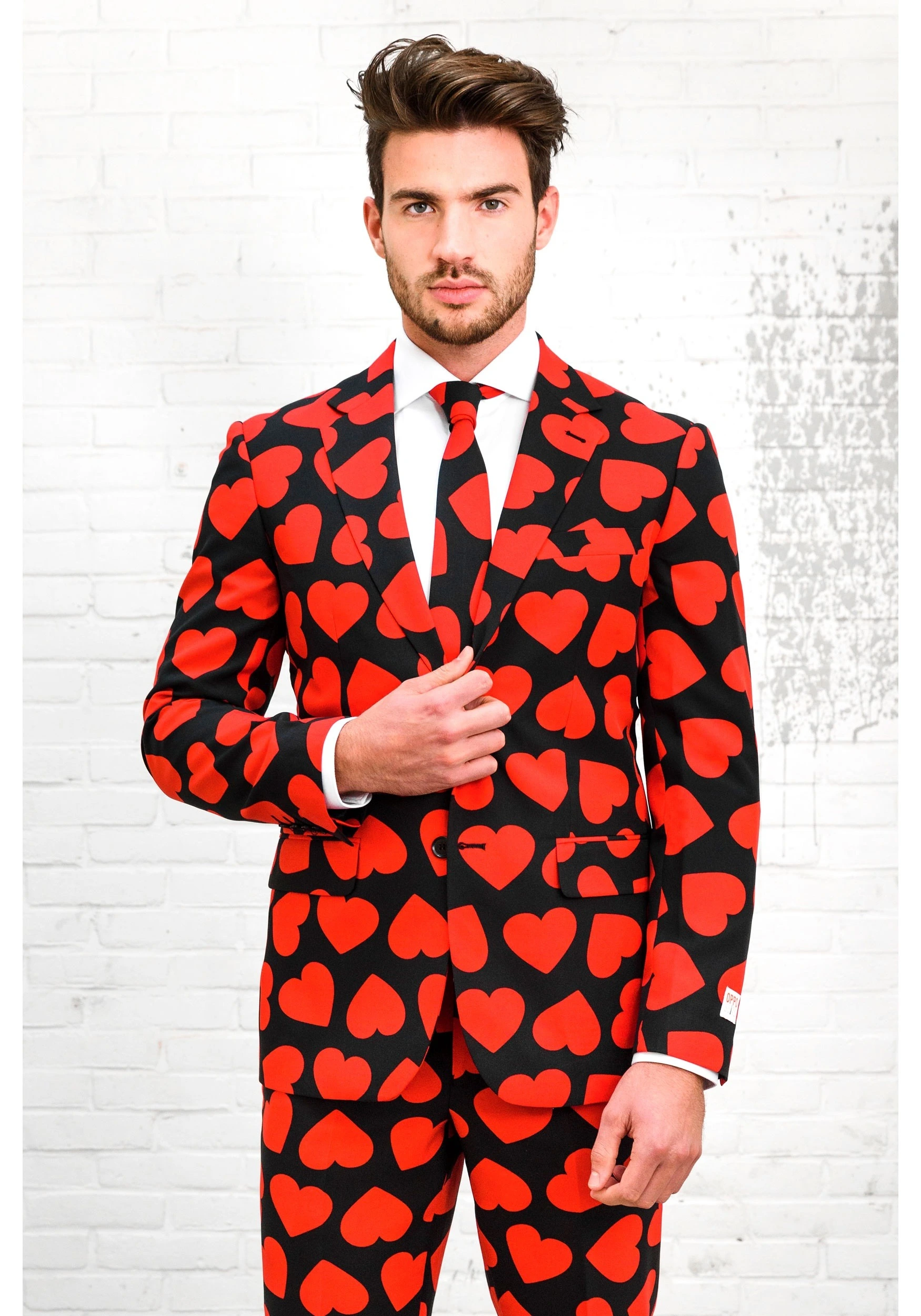 It’s about time you took your place on what we must assume is a velvet throne lined with glowing neon red lights, the throne of the king of hearts. Yes, there’s no need for you to make the first move or check your app when you’re wearing this stunning suit. It has a classic black background, a classic cut, and is bursting with a red heart pattern. All those people hunched over their drinks waiting for that Tinder date who may or may not show up will feel their hearts lift in hope when you walk in the door. Whether or not you’re interested in those poor passive, non-heart suit-wearing people, it is you, brave soul, that is delivering that hope in this cold technological age.