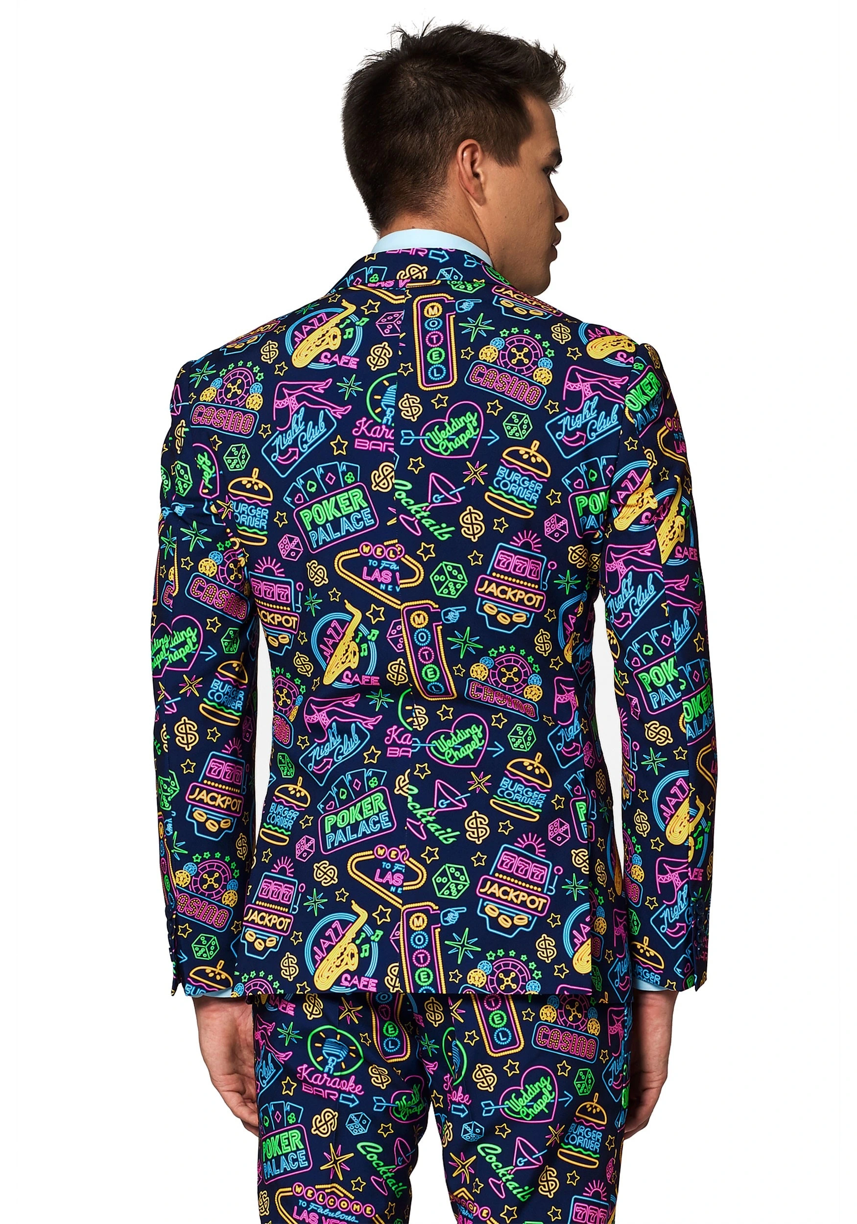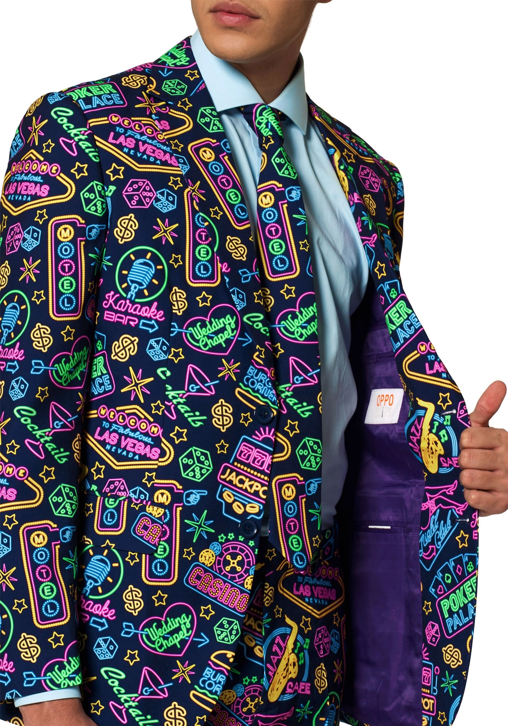 Have you ever walked along The Strip at night? It’s a smorgasbord of flashing lights and wild spectacles unlike anything else on Earth! Unfortunately, most of us can’t spend all of our time walking the Las Vegas Strip… and even if we could, it’s really only lit up at night. Well, the designers from Opposuits have crafted a suit that embodies the lively nature of the Vegas strip. It actually brings the bright lights and colorful casino ambiance into apparel you can wear when you need to feel like you’re strolling through The Strip!