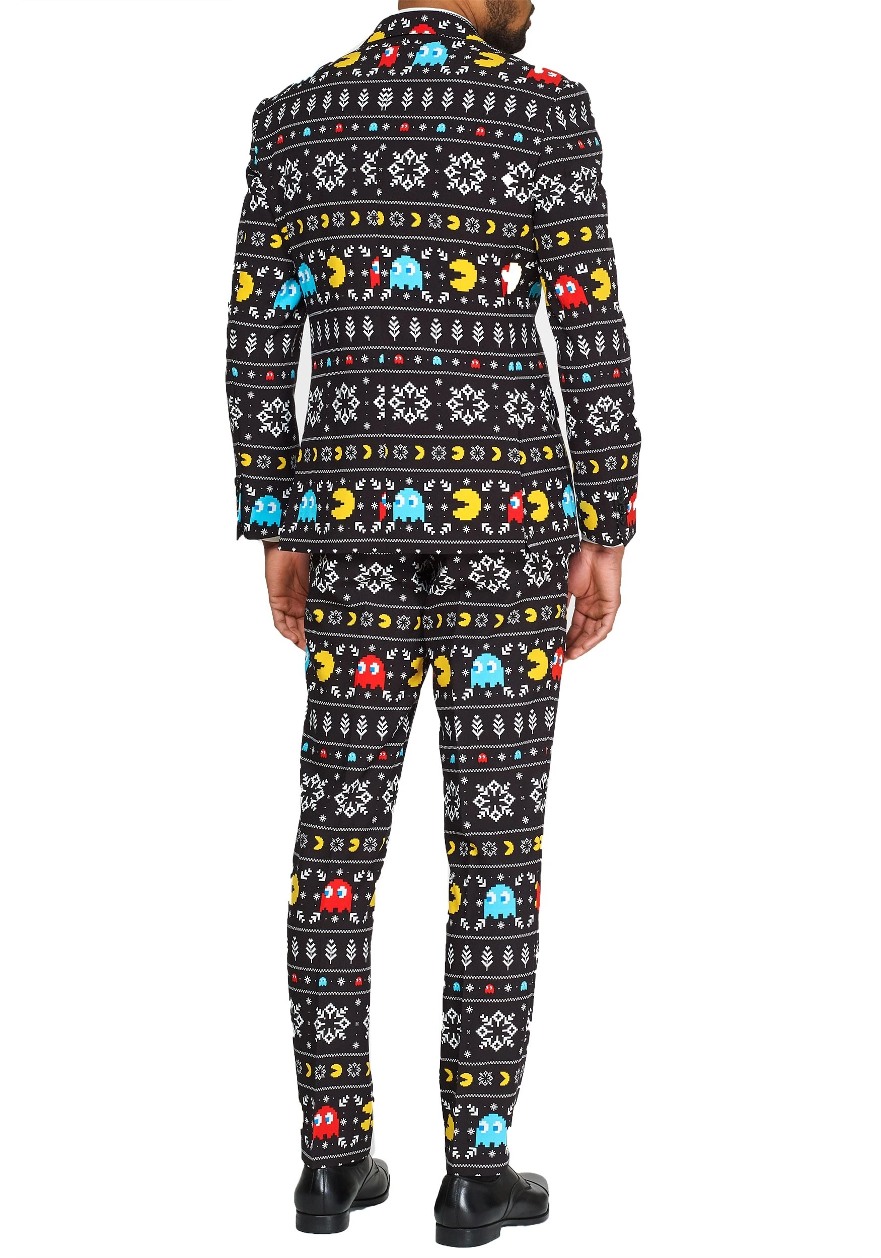 Well, this Opposuit Winter Pac-Man Suit combines those nasty ghosts of yore, the little yellow pellet-eating dude, and plenty of Christmas cheer to create a unique suit experience for you.
