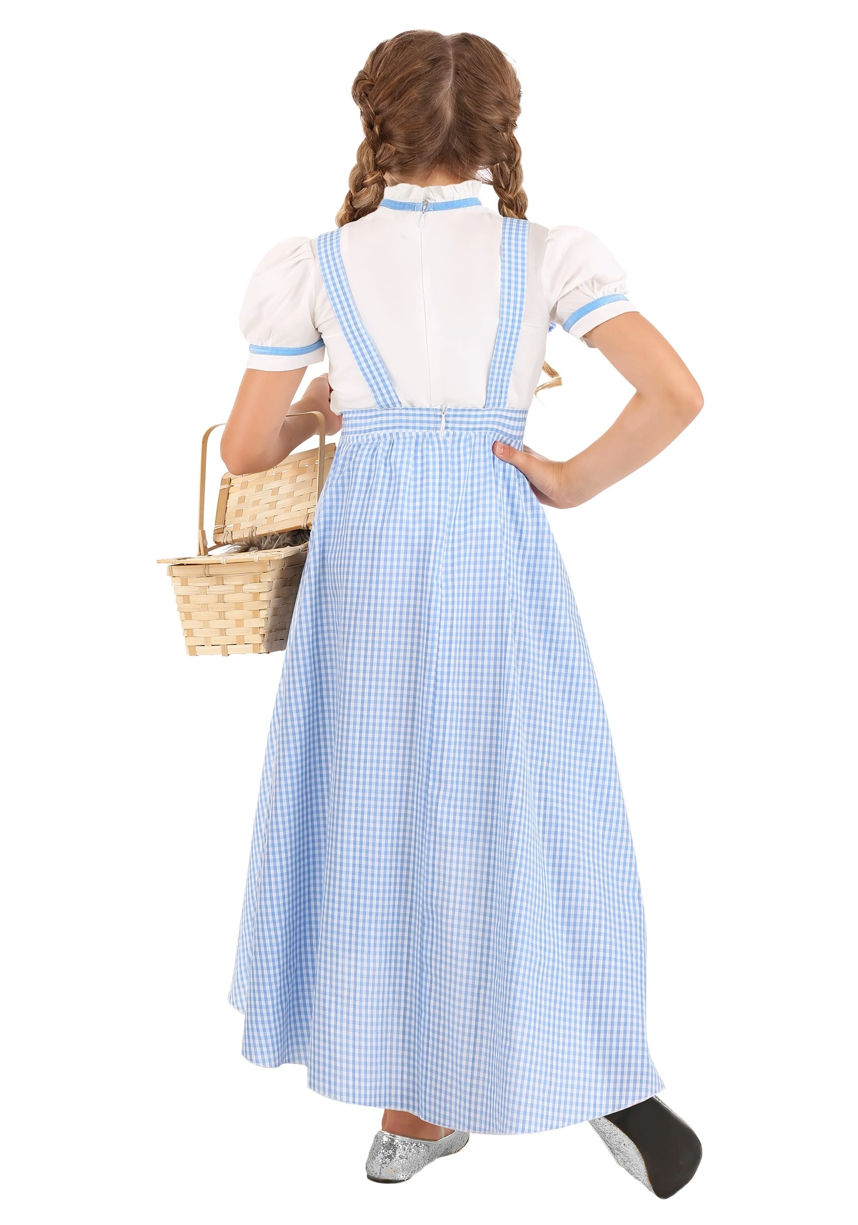 Our costume designers worked hard to create an outfit that’s perfect for adventuring in faraway fantasy lands! It also happens to be cute for costume parties and dress-up days. The costume begins with a simple white blouse that has puffy shoulders for a classic look that will have your little one feeling like a Kansas Girl! The costume also comes with a blue, gingham style skirt that features decorative bows and decorative buttons on the front. Put it together and you have a simple outfit that will transform your girl into a traveler from a classic fairytale!