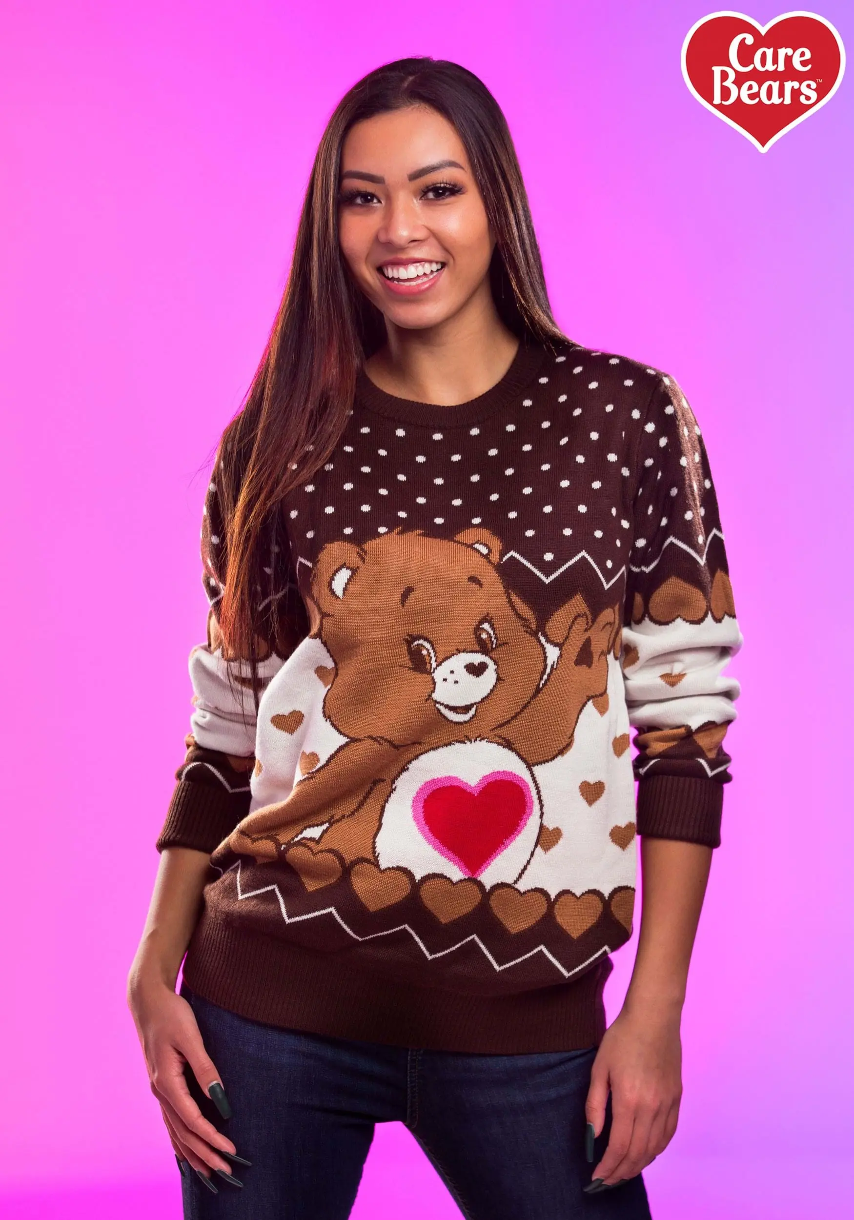 This officially licensed Tenderheart Ugly Christmas sweater is knit from acrylic yarn for a comfy fit that’s perfect for the holiday season. It has the friendly bear on the front along with a polka dot pattern throughout. It even has light brown hearts along the bottom to help remind everyone to share the care this year. It’s a great look for any fan of the classic cartoon series, or brand new Care Bear fans that just need a cute way to keep warm this season.